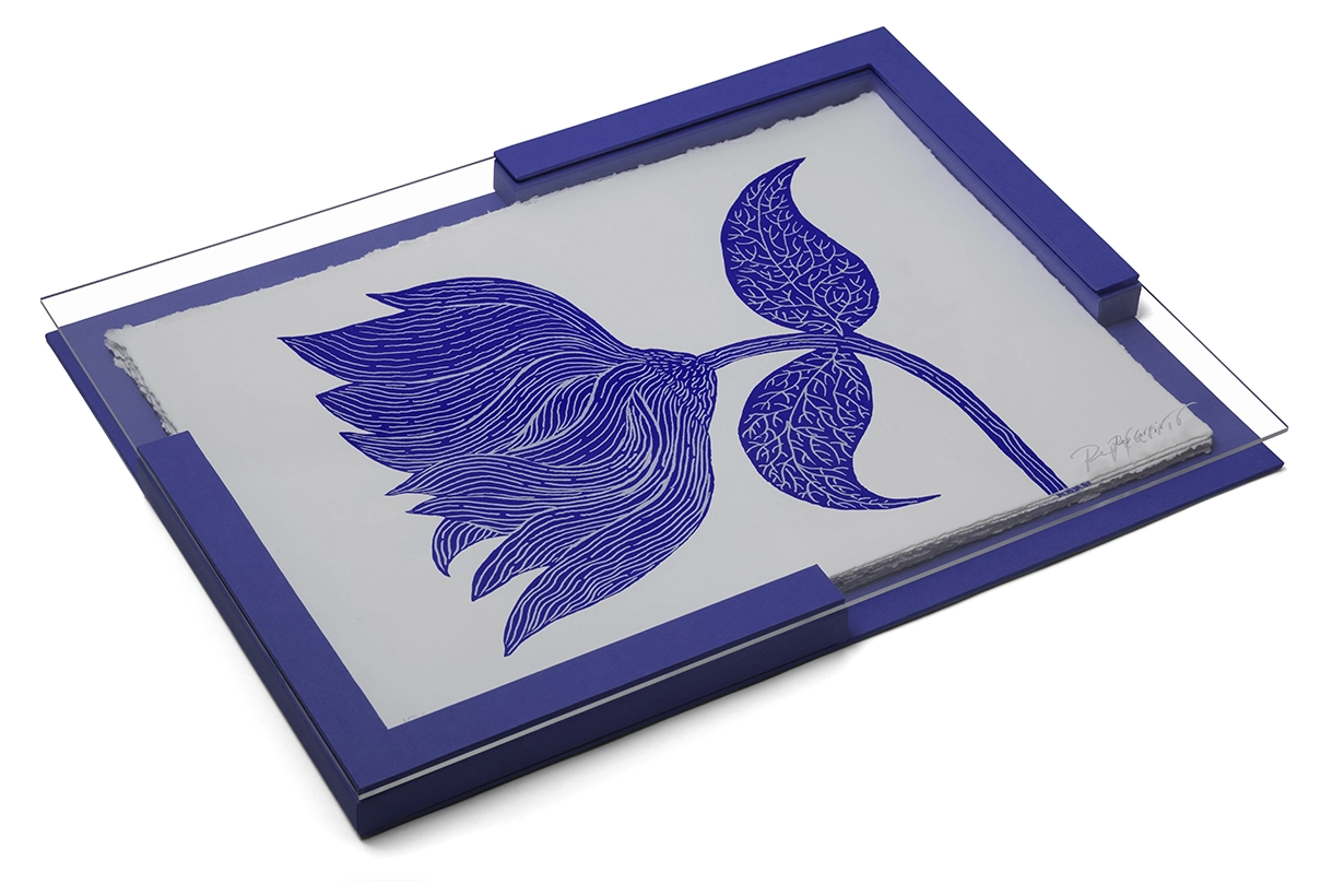«Botánica Azul» nace a partir del proyecto Diario Visual, en el cual el mundo vegetal fue el protagonista durante el año 2024. Consiste en una carpeta con 12 imágenes vegetales, estampadas en serigrafía por Natalia Royo de Tintaentera, a dos tintas sobre papel Lito-Gravt en formato A3.