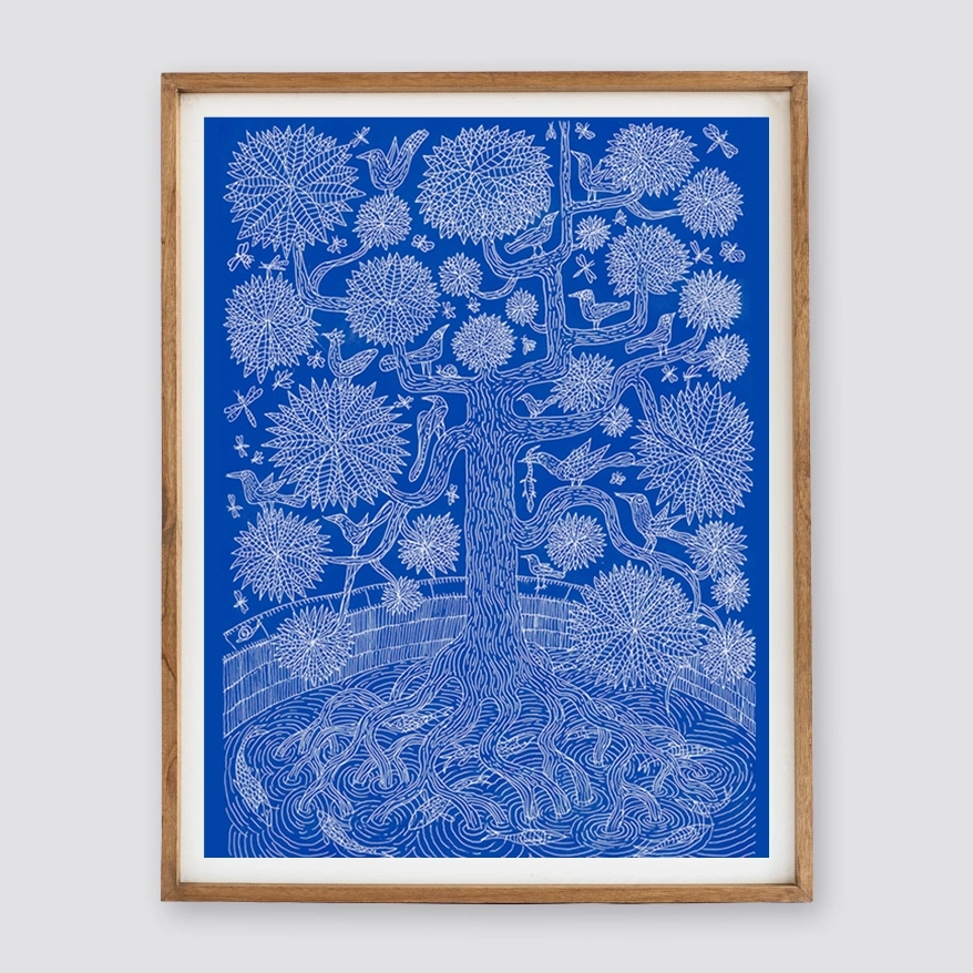Tranquiliza este azul, tanto como observar que incluso el movimiento del agua se deja capturar. Tranquiliza, sí, saber hay quien al dibujar, sin plan alguno, en lugar de monstruos o un sol lejano, elige las flores.